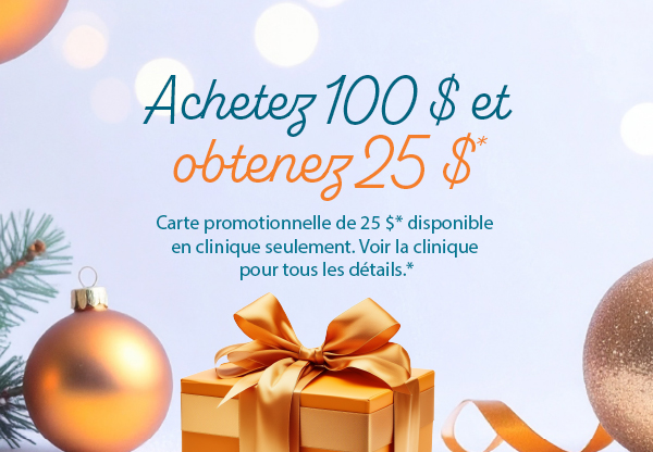 Un Certificat-Cadeau est le cadeau parfait pour toute occasion. Achetez-le facilement en ligne et imprimez-le ou envoyez-le par courriel à la personne choyée. Vous pouvez aussi acheter une carte cadeau en clinique.